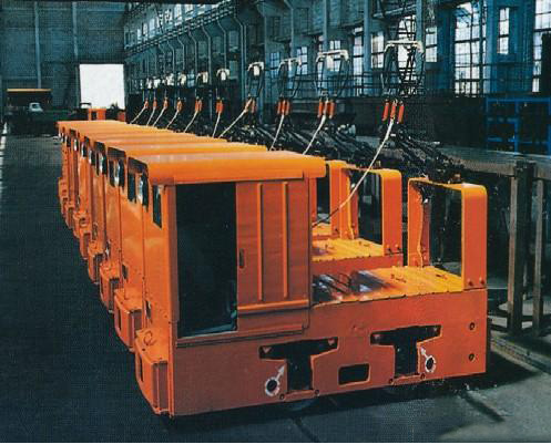 Locomotives are with single cabin and two cabins weighing from 3.5 t to 18 t. Cabins are removable, due to a simple transport into underground tunnels. Transmission of torque moment from the electric motors is through the axle gearbox to travel wheels. The chassis is of dual-axle type and travel wheels are secured with interchangeable rims. Suspension of locomotive is provided by elastic rubber-metal blocks of sagittal shape or by means of springs in accordance with the track quality.